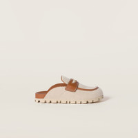Canvas and leather mules