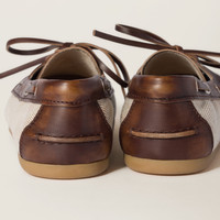 These classic canvas and bleached leather boat shoes with preppy references express sleek, contemporary elegance due to the ultra-light structure and sophisticated embossed logo. - Product code: 5D376E_3LQM_F0J51_F_005 - Upper with threaded laces and bow - Leather lining - Rubber sole - Removable leather-covered insole - Logo embossed on the tongue and screen-printed on the insole - Imported Materials Main material: Cotton