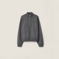 A relaxed and casual attitude inspires this sweater, which blends fine cashmere with a grey melange jersey lining, adding structure and versatility to this refined piece, enriched with iconic details and references. - Product code: MMR467_19RO_F0480_S_OOO - Plain knit - Oversized fit - Long sleeves - Ribbed collar - Drop shoulder - Ribbed cuffs and hem - Front half zipper closure - Intarsia logo - Cashmere exterior, jersey interior - Imported - The model is 177 cm tall and wears a size 38 Height 67cm Materials Main material: 100% Cashmere