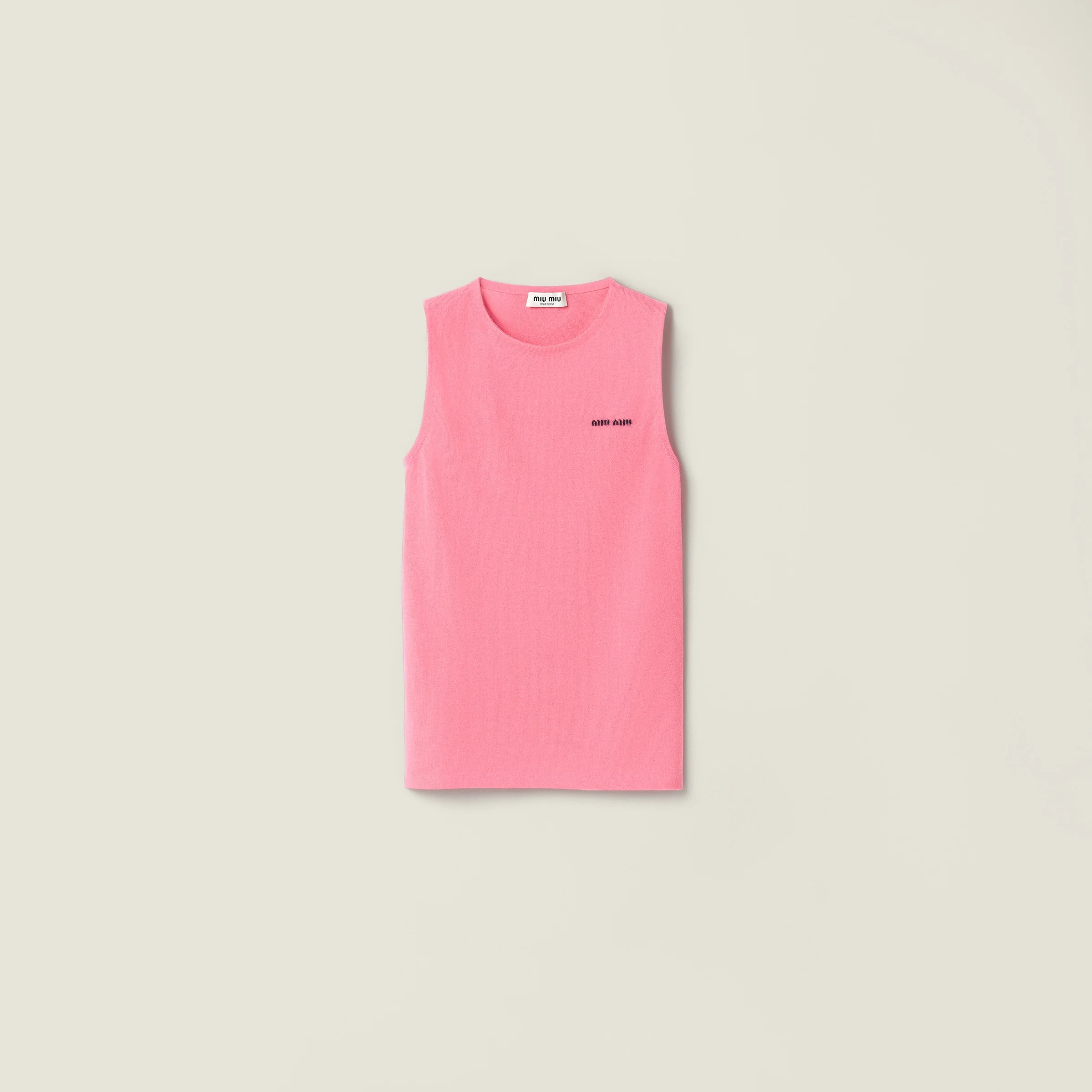 Soft cashmere shines with the luster of silk, creating a contrast between refined simplicity and the sensuous character of this knit top that comes in classic and vibrant shades, design for feminine, layered looks. - Product code: MMV314_17I7_F0AEJ_S_OOO - Plain knit - Straight fit - Sleeveless - Semi-raglan shoulder - Intarsia logo - Imported - The model is 177 cm tall and wears a size 38 Height 65cm Materials Main material: 30% Silk 70% Cashmere