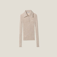 A casual yet refined style characterizes this cashmere and silk knit polo shirt. The slim fit and ribbed knit create a silhouette with effortless femininity, while the intarsia logo in a contrasting color completes the look with an iconic note. - Product code: MML820_13KV_F0036_S_232 - Ribbed knit - Slim fit - Semi-raglan shoulder - Front button closure - Long sleeves - Intarsia logo - Imported - The model is 179 cm tall and wears a size 38 Height 60cm Materials Main material: 30% Silk 70% Cashmere