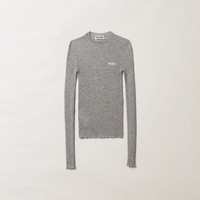 A casual yet refined style characterizes this cashmere and silk sweater. The slim fit and ribbed knit create a silhouette with effortless femininity, while the intarsia logo in a contrasting color completes the look with an iconic note. - Product code: MML821_13KV_F0031_S_232 - Ribbed knit - Slim fit - Ribbed knit crew-neck - Semi-raglan shoulder - Long sleeves - Intarsia logo - Imported - The model is 180 cm tall and wears a size 38 Height 60cm Materials Main material: 30% Silk 70% Cashmere