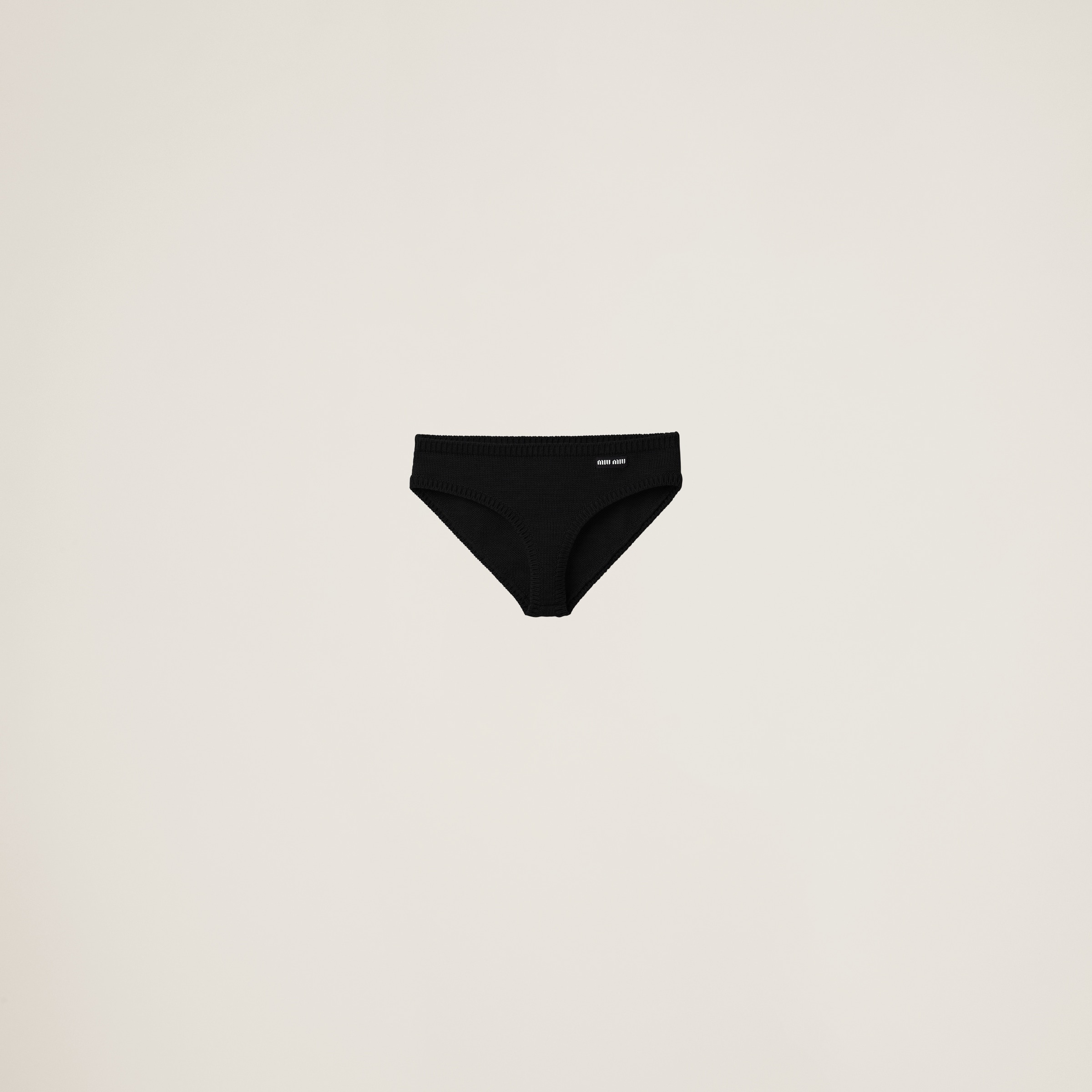The Miu Miu logo gives these cashmere panties an iconic and distinctive character. - Product code: MMP218_13S1_F0002_S_232 - Intarsia logo - Plain knit - Imported Height 21cm