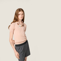 This luxurious garment has a slim, feminine fit. This soft cashmere polo sweater stands out for its refined pointelle and cable-knit motifs that underline its lightness and delicate essence. - Product code: MMLB59_17IW_F0236_S_OOO - Openwork knit - Slim fit - Short sleeves - Semi-raglan shoulder - Ribbed knit sleeve trim and hem - Front closure with 3 buttons - Knit logo patch - Imported - The model is 180 cm tall and wears a size 38 Height 58cm Materials Main material: 100% Cashmere