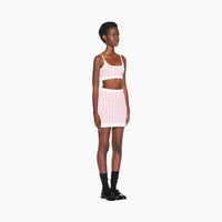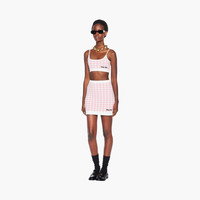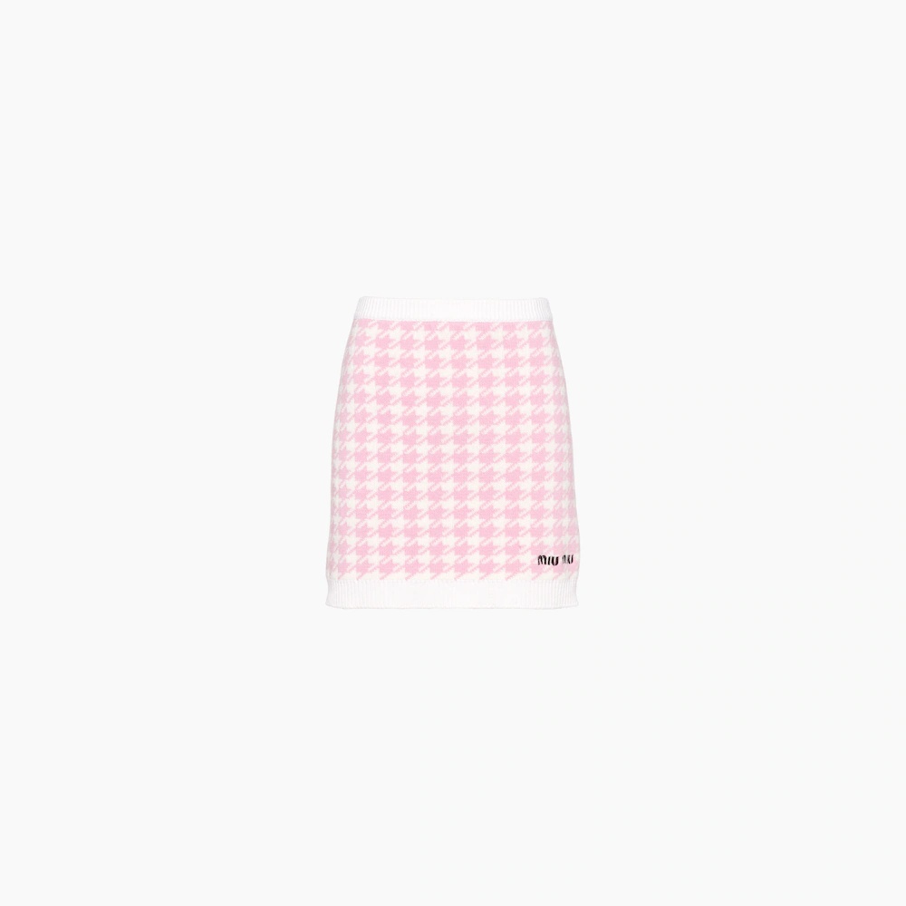 Cod. MMG397_11UX_F0AY1 A precious jacquard motif resembling the houndstooth check decorates this skirt made of fine cashmere. The minimalist line enhances the two-tone motif of this garment with retro allure, decorated with the embroidered logo. - Jacquard knit - A-line silhouette - Ribbed knit hem - Embroidered logo Height 40 cm COMPOSITION 100% CASHMERE EXCLUSIVE OF DECORATIVE THREAD