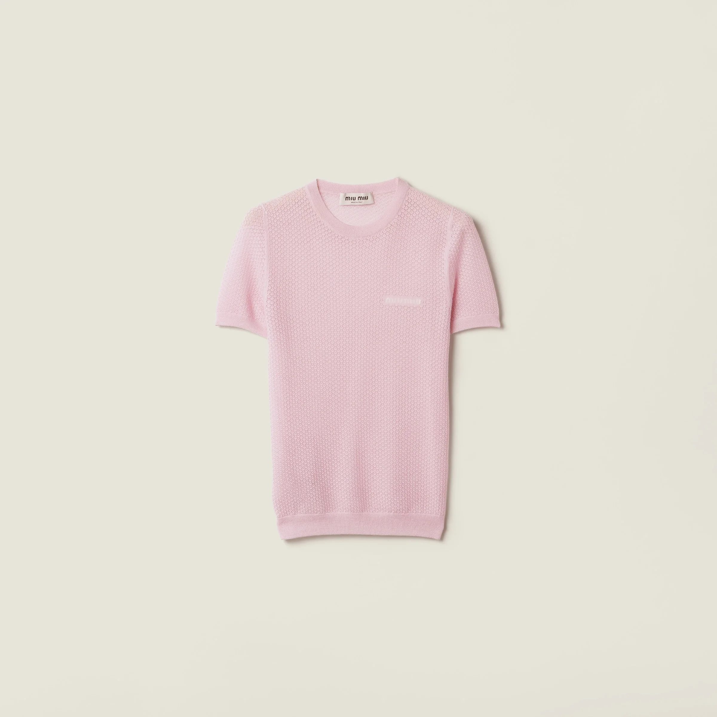 The fine cashmere of this sweater acquires character thanks to the lacy motif and intarsia logo that gives the simple design femininity and charm, perfect for elegant, contemporary looks. - Product code: MMLB30_17NN_F0E18_S_OOO - Ribbed knit/lacy motif - Slim-fit silhouette - Short sleeves - Ribbed knit crew neck - Semi-raglan shoulder - Ribbed knit sleeve trim and hem - Intarsia logo - Imported - The model is 178 cm tall and wears a size 38 Height 58cm Materials Main material: 100% Cashmere