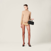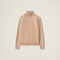 The minimalist style of this cashmere sweater is enriched by the Miu Miu logo that introduces a chromatic contrast and gives an iconic touch to the garment. The sleek lines make the garment versatile. - Product code: MMR425_13S1_F0627_S_232 - Long sleeve - Plain knit - Slim fit - Ribbed knit turtleneck - Semi-raglan shoulder - Ribbed knit cuffs and hem - Intarsia logo - Imported - The model is 177 cm tall and wears a size 38 Height 58cm