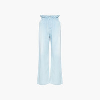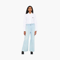 Miu Miu presents an exercise in references and a study of reality, using what exists to create something new. Classic tailoring is subverted and the silhouette of menswear pants takes on new meanings. The embroidered lettering logo stands out on the back. - Washed denim - Regular fit - Paperbag waist - Button fly - Contrasting top-stitching - Rounded front pockets with coin pocket - Back patch pockets - Embroidered logo Product code GWP440_10BM_F0013