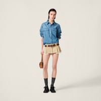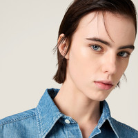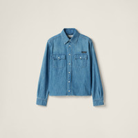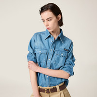 Inspirations from the fifties enrich the details of this light chambray shirt characterized by its distinctive cropped fit that expresses the encounter between menswear and women's apparel and Miu Miu's casual attitude. - Product code: GWC123_16UA_F0013_S_OOO - Washed treatment - Classic fit - Unlined garment--Shirt collar - Front button closure - Sleeves with shirt cuff - Flapped front pockets - Matching stitching - Sartorial logo label - Imported - The model is 178 cm tall and wears a size 38 Height 56cm Materials Main material: 100% Cotton