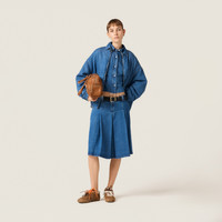 The unmistakable style of denim in this shirt is combined with the boxy lines and raw-cut hem that gives the garment a contemporary character. The embroidered logo completes the design with an iconic note. - Product code: GWC104_143V_F0008_S_232 - Washed treatment - Boxy fit - Unlined - Shirt collar--Front button closure - Contrasting stitching - Embroidered logo - Imported - The model is 177 cm tall and wears a size 38 Height 48cm Materials Main material: 100% Lyocell