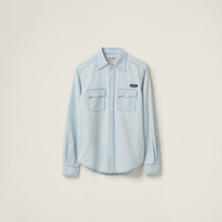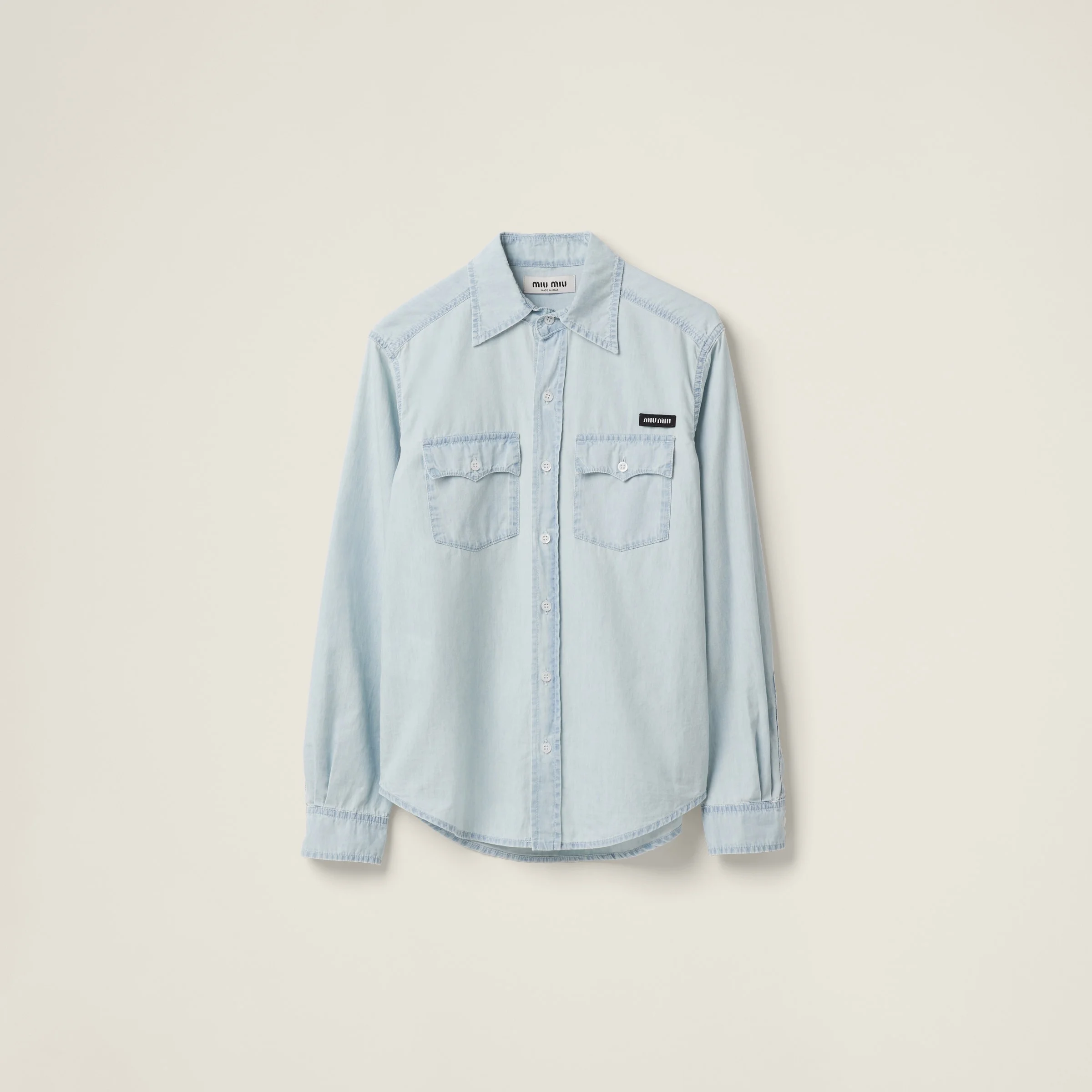 Thanks to its iconic and distinctive note, the embroidered Miu Miu logo stands out on the essential lines of this chambray shirt. The minimalist lines define a versatile and contemporary look. - Product code: GWC115_14UT_F0076_S_OOO - Washed treatment - Classic fit - Unlined - Classic collar - Front button closure - Long sleeves with buttons - Patch pocket on the front - Tonal stitching - Sartorial logo label - Imported - The model is 177 cm tall and wears a size 38 Height 70cm Materials Main material: 100% Cotton