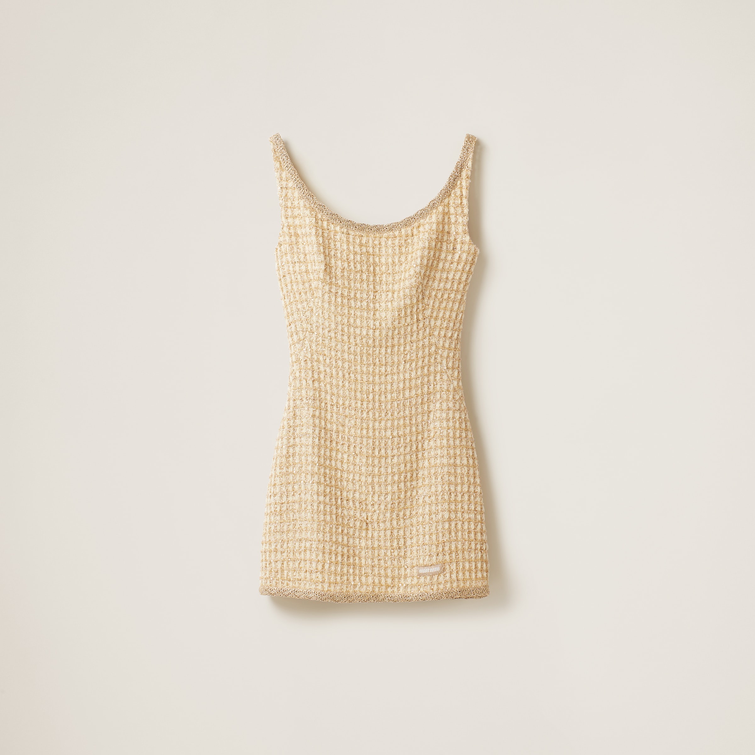 The classic check pattern characterizes this mini-dress. The embroidered neckline adds a refined, sparkling touch to the garment while the logo label completes the look with an iconic note. - Product code: MF5227_1377_F0C58_S_OOO - Sheath dress silhouette - Lined - Embroidered scoop neck - Back zipper closure - Knit logo label - Imported - The model is 178 cm tall and wears a size 38 Height 80cm