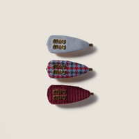 Texture and pattern blend in a lively combination that reveals the iconic essence of these barrettes and interprets feminine, sophisticated style that is ideal for every seasonal look. - Product code: 5IF188_2IEK_F04UM - Metal lettering logo - Imported Width 5.6cm Materials Main material: Mohair Virgin Wool