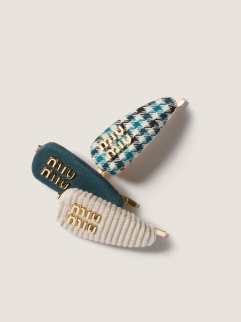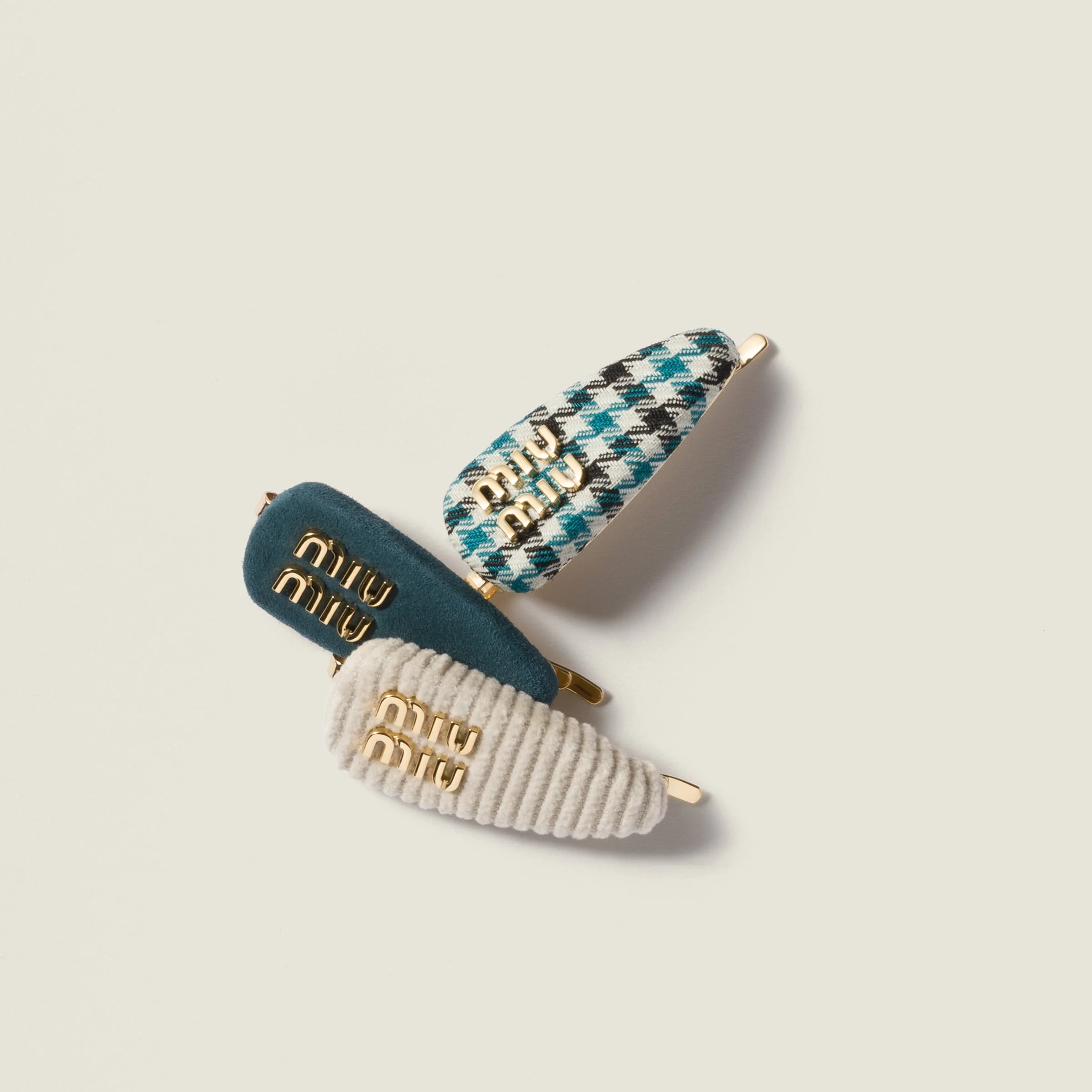 Texture and pattern blend in a lively combination that reveals the iconic essence of these barrettes and interprets feminine, sophisticated style that is ideal for every seasonal look. - Product code: 5IF188_2IEK_F04UK - Metal lettering logo - Imported Width 5.6cm Materials Main material: Mohair Virgin Wool