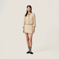 The classic, vintage style of the check pattern is combined with distinctive Miu Miu details on this miniskirt. The embroidered logo adds its signature touch to this contemporary style. - Product code: MG2135_1377_F0C58_S_OOO - Miniskirt silhouette - Lined garment - Side zipper with hook - Knit logo label - Lurex knit trim - Imported - The model is 177 cm tall and wears a size 38 Height 32cm