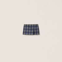 Soft shades intertwine in a classic check pattern that recalls '90s fashion and adds character to this wool miniskirt with a bold, feminine slit inspired by a Miu Miu archive icon. - Product code: MG2604_1806_F0GBN_S_WMO - Miniskirt - Lined garment - Side closure with hook and zip - Leather lettering logo - Imported - The model is 177 cm tall and wears a size 38 Materials Main material: 100% Virgin Wool