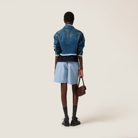 The check motif reinterprets the design of these poplin boxer shorts, an iconic element of the Miu Miu wardrobe, making layering and unique style contrasts possible. - Product code: SP9460_16MK_F0QY6_S_OOO - Menswear fit - Unlined garment - Button fly - Inseam pockets - Embroidered logo - Imported - The model is 179 cm tall and wears a size 38 Height 34cm Materials Main material: 100% Cotton