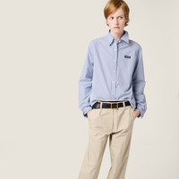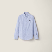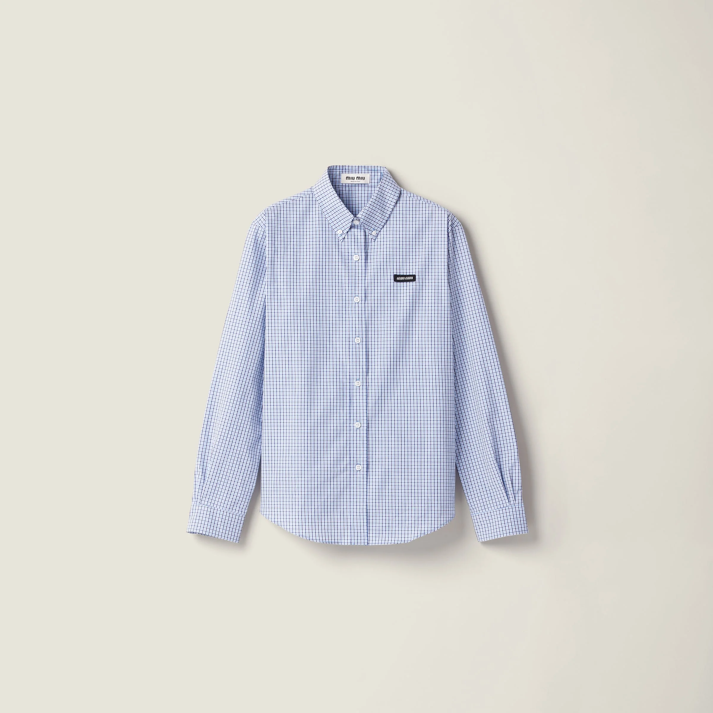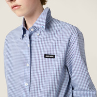The classic button-down style of this poplin shirt becomes unique thanks to the check pattern that plays with menswear style codes and reflects Miu Miu's essence, creating looks characterized by iconic contrasts. - Product code: MK1920_17L1_F0D1Y_S_OOO - Straight fit - Shirt collar - Rounded hem - Front button closure - Long sleeves with buttons - Knit logo label - Imported - The model is 177 cm tall and wears a size 38 Height 70cm Materials Main material: 100% Cotton