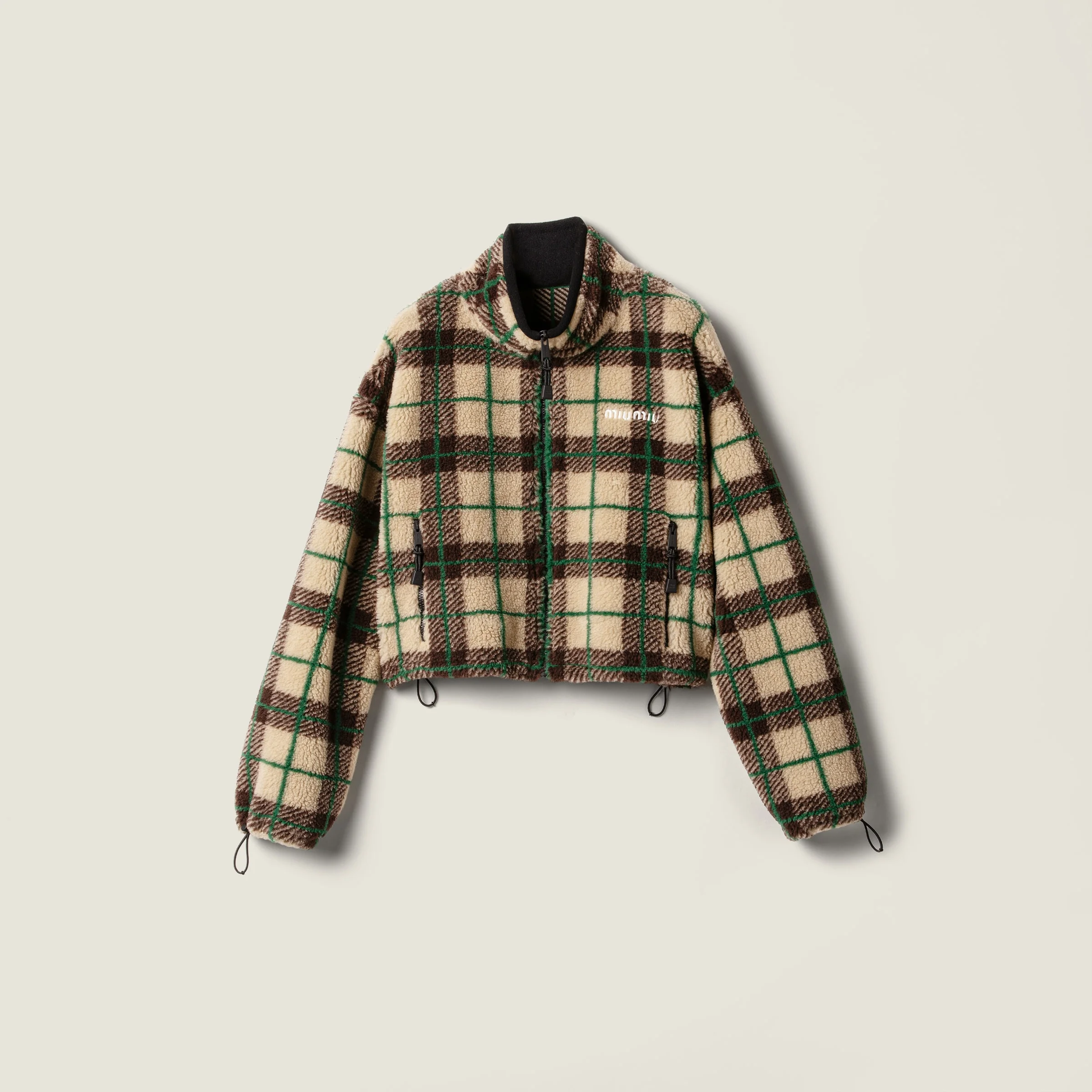 The iconic fleece jacket is transformed through soft, contemporary volumes. The check motif with a classic attitude, recalls menswear and is reinvented through exclusive details and a slightly cropped silhouette with a modern fit. - Product code: MJLA33_18ZQ_F042Q_S_OOO - Boxy fit - Long sleeves - Stand-up collar - Front zipper closure - Elasticized hem - Embroidered logo - Imported - The model is 179 cm tall and wears a size 38 Materials Technical fabric