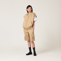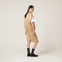 In this new chino blouson jacket, classic tailoring is subverted to give new meaning to traditional womenswear garments. The shirt-style collar and armhole have raw-cut edges that are deliberately left unfinished to make room for new suggestions. The elasticized hem adds a sporty note to the garment, while the embroidered logo on the chest adds a touch of distinct femininity to the garment. - Product code: ML909_1UPX_F0065_S_231 - Shirt collar - Zipper closure - Welt pockets - Lined - Embroidered logo - Elasticized hem - Imported - The model is 177 cm tall and wears a size 38 - Height: 65cm