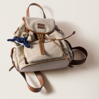 The two-tone cord, a symbol of Miu Miu style, defines the design of this nautical-themed trick characterized by refined workmanship and a contrast of unique materials. - Product code: 5TT262_2IDD_F0I33 - With cord detail - Leather strap - Logo-engraved medal - Imported Height 6cm Width 12cm Materials Main material: Calfskin