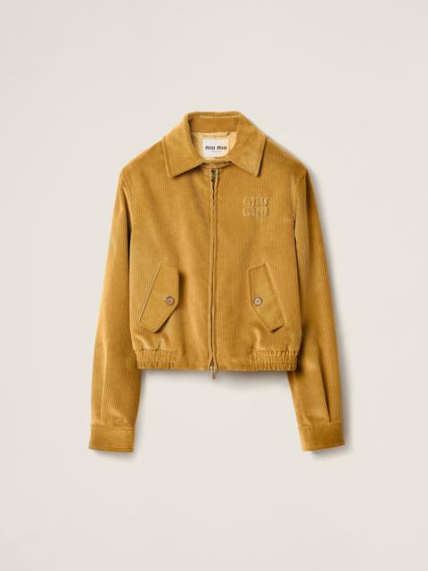 This blouson jacket combines the refined texture of corduroy with elegant details like the shirt-style collar. The embroidered logo completes the look with an iconic and distinctive note. - Product code: ML962_13I4_F0124_S_232 - Zipper closure - Shirt-style collar - Long sleeves - Buttoned cuffs - Flap pockets - Lined - Padded with wadding - Embroidered logo - Imported - The model is 179 cm tall and wears a size 38 Height 53cm Materials Main material: 100% Cotton