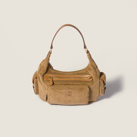 The retro and casual charm of corduroy reinterprets the design of the Pocket bag, embodying Miu Miu’s experimentation with vintage codes and the versatility of a model with a contemporary spirit. - Product code: 5BC189_AF81_F0401_V_OZO - Nappa leather handle - Front and back pocket - Side flap pockets with buckle - Gold-tone hardware - Linen-blend lining with zip pocket - Leather logo lettering on pocket - Imported Height 28cm Width 32cm Length 9cm Materials Main material: Cotton