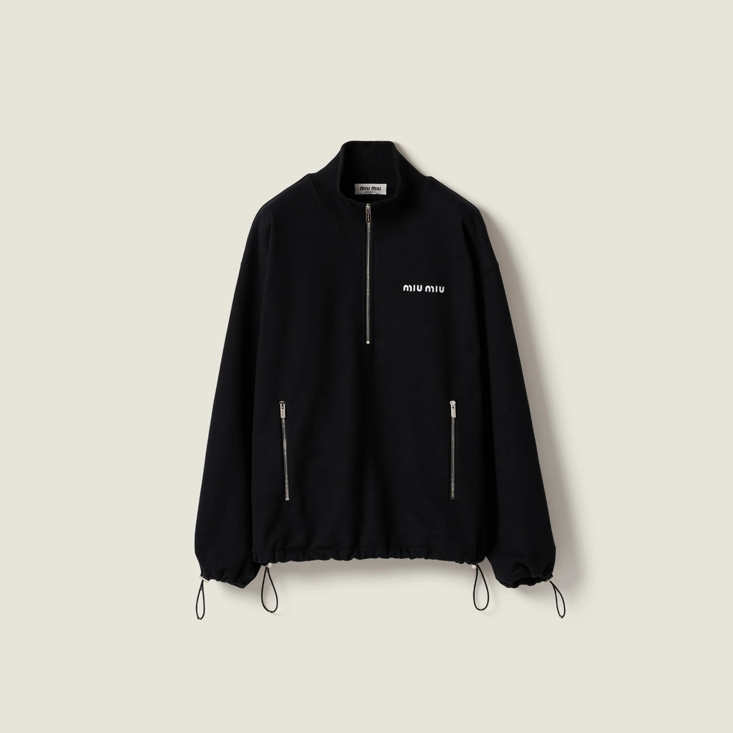 This sweatshirt combines style and performance, highlighting a relaxed fit that plays with proportions and conveys athletic, contemporary allure. - Product code: MJL043_13UK_F0002_S_OOO - Oversized fit - Long sleeves with ribbed knit cuffs - Stand-up collar - Front zipper closure - Elasticized hem - Embroidered logo - Imported - The model is 180 cm tall and wears a size 38 Height 70cm Materials Main material: 100% Cotton