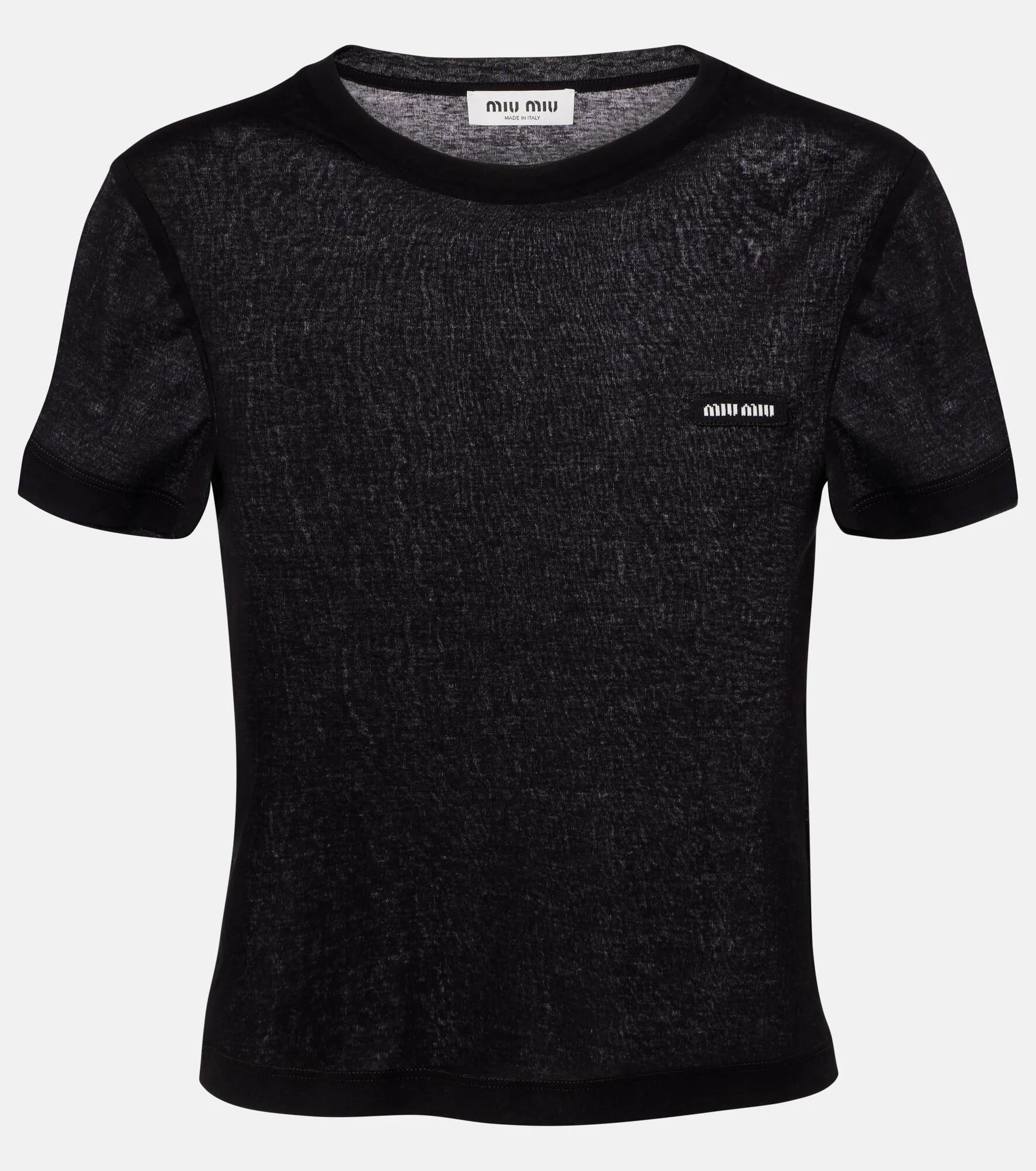 This T-shirt from Miu Miu is a timeless addition to any well-curated wardrobe. Crafted from soft cotton jersey, the design is complete with subtle logo lettering at the chest. Product Details - Material: 100% cotton - Care instructions: dry clean - Made in Italy - Designer color name: Black - Item color: black - Collar: crewneck - Item number: P01106663 Size & Fit - True to size - Straight fit - Stretchy fabric - Falls to the hip - The model seen in the picture is 178cm-5'10" and wearing a size XS