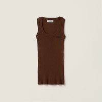 Very fine cotton yarn, seamlessly knit, reinterprets the classic ribbed knit motif in a contemporary way, defining a slim fit that embodies the understated simplicity of this tank top. - Product code: MMV294_12ZL_F0324_S_OOO - Ribbed knit - Slim fit - Sleeveless - Scoop neck - Intarsia logo - Imported - The model is 180 cm tall and wears a size 38 Height 58cm Materials Main material: 100% Cotton