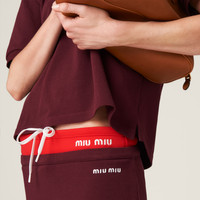 Miu Miu reinterprets the classic pencil silhouette in this cotton pique skirt. The side slit adds lightness to the garment while the embroidered logo completes the design with an iconic note. - Product code: MJD209_14RW_F0399_S_OOO - Pencil silhouette - Embroidered logo - Side slit - Twin-needle hem - Imported - The model is 180 cm tall and wears a size 38