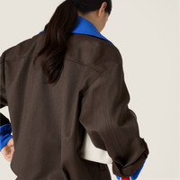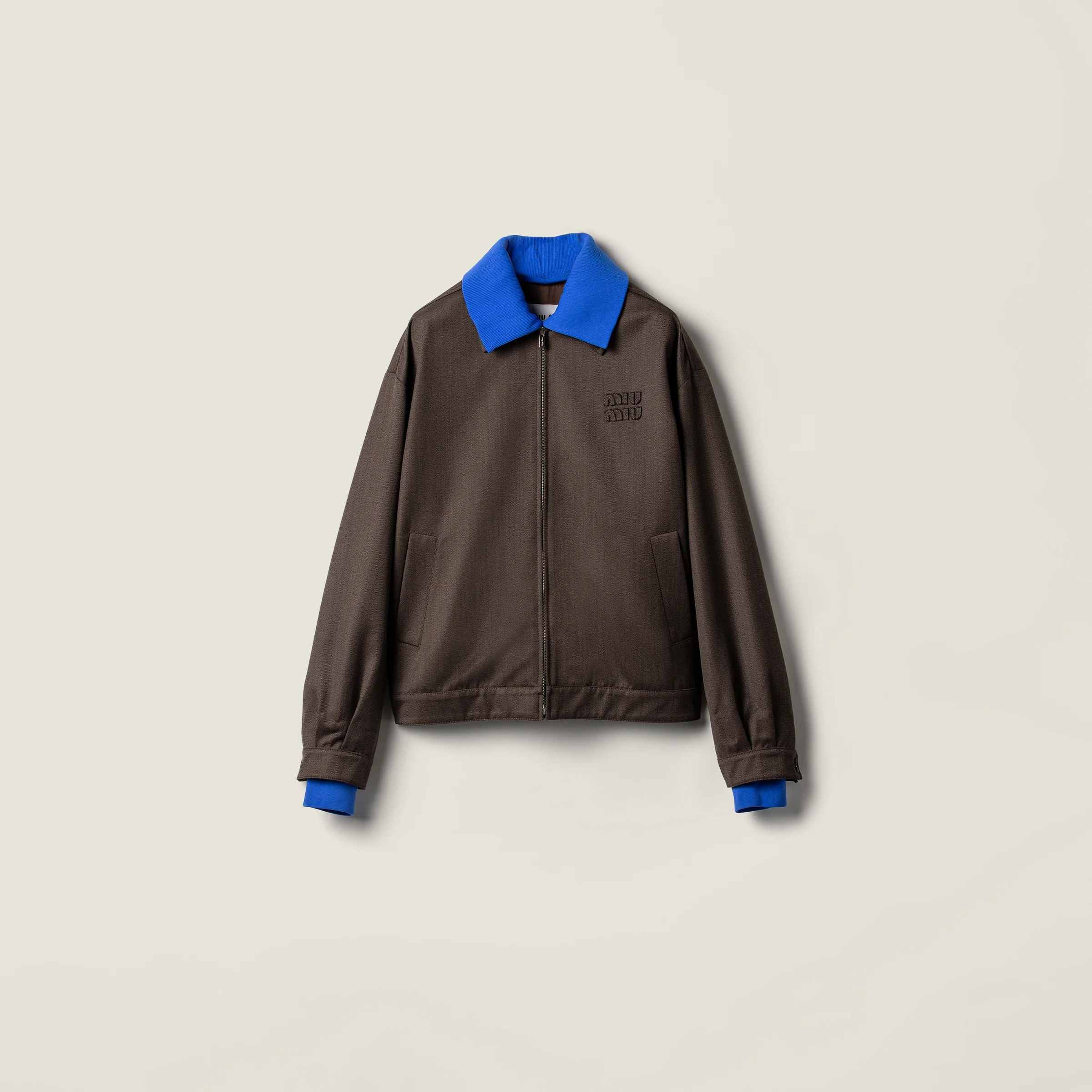 A sporty yet sartorial attitude inspires this blouson jacket in cover fabric, an innovative material with a contemporary finish, enhanced by a detachable collar and cuffs in technical yarn, drawing inspiration from the iconic tracksuit. - Product code: ML1418_180R_F0324_S_OOO - Lined garment - Ribbed collar and cuffs - Long sleeves - Zip closure - Welt pockets - Embroidered logo - Imported Height 63cm Materials Main material: 100% Virgin Wool