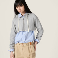 The iconic melange gray hoodie is reinvented in a cropped version, giving the relaxed character a contemporary twist, ideal alone for bold looks or layered for sophisticated combinations. - Product code: MJLA25_182J_F0031_S_OOO - Cropped fit - Unlined garment - With hood - Front zipper closure - Long sleeves with ribbed knit cuffs - Raw-cut hem - Embroidered logo - Imported - The model is 177 cm tall and wears a size 38 Height 70cm Materials Main material: 100% Cotton