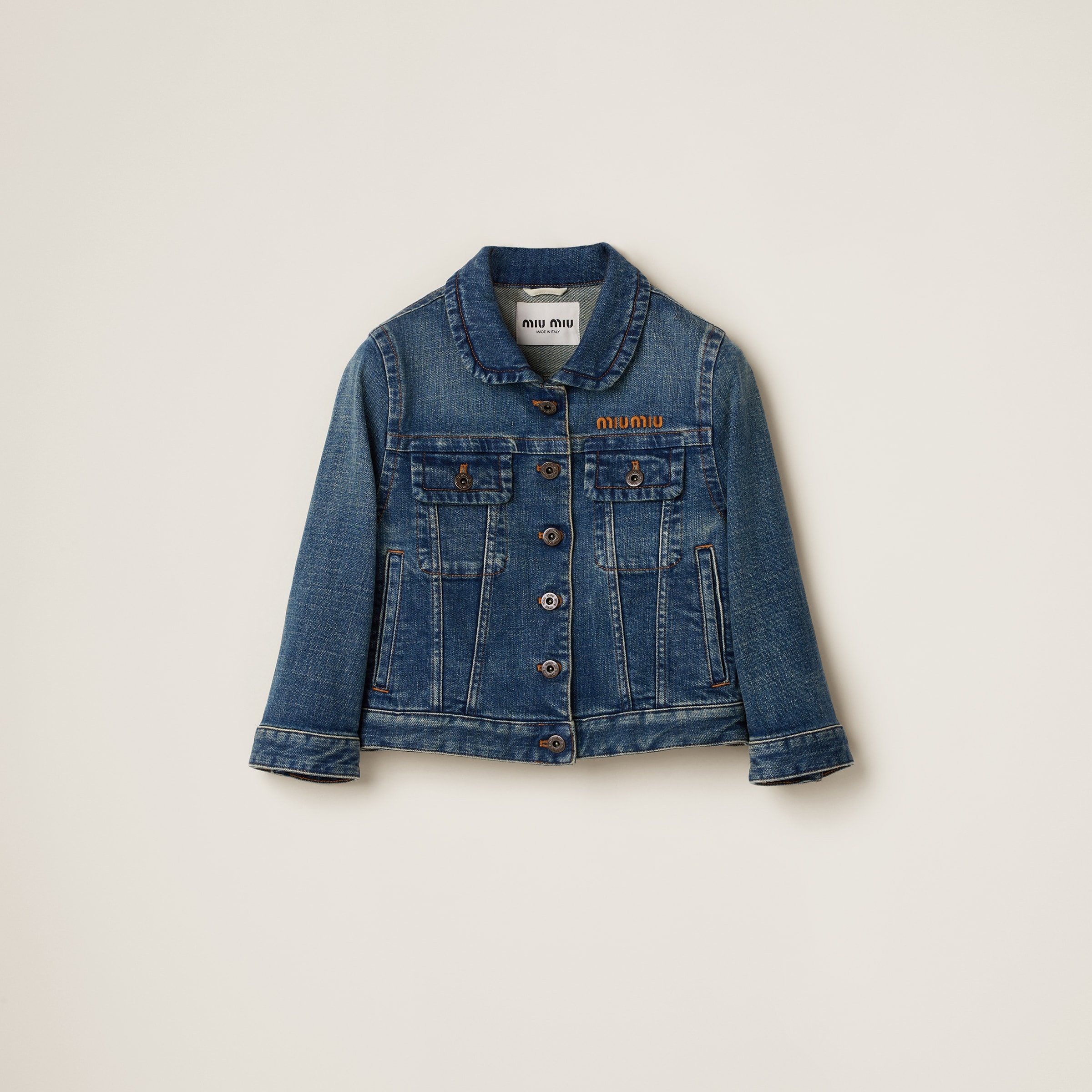This denim jacket is reinterpreted with new proportions and slim lines that reflect a rebellious, contemporary spirit. - Product code: GWB224_15UJ_F0008_S_OOO - Washed denim treatment - Unlined - Slim fit - Shirt-style collar - Fitted sleeve, buttoned cuffs - Tack button closure - Contrasting stitching - Flapped pockets with button on the chest - Low welt pockets - Center-back length: 41 cm, Size: 38 - Adjustable back belt with buttons - Embroidered logo - Imported - The model is 178 cm tall and wears a size 38 Height 41cm