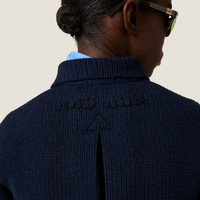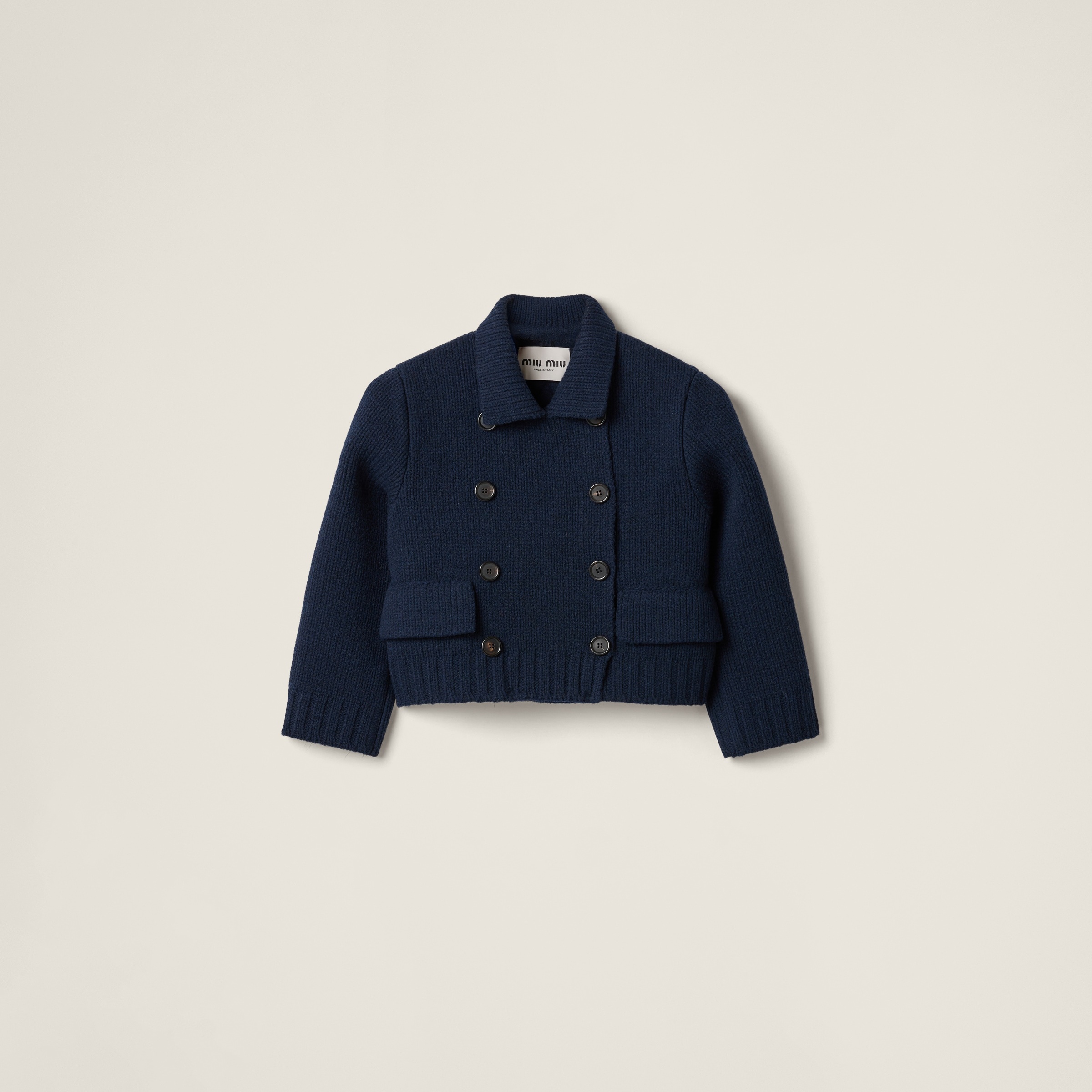 Nostalgic elements and vintage details define the silhouette of this sophisticated wool jacket. The knitted design is accented with the iconic logo lettering. - Product code: MMJ115_15RS_F0008_S_OOO - Three-quarter length sleeves - Needlepunched shaved motif - Slim fit - Regular shoulder - Ribbed knit at cuffs and hem - Lettering logo - Front button closure - Flap pockets - Embroidered lettering logo applique on back - Imported - The model is 179 cm tall and wears a size 38 Height 40cm
