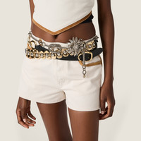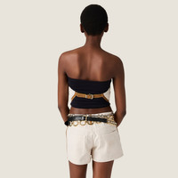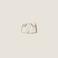 The unique texture of white denim gives these shorts summery charm and highlights the contrasting suede details that enrich the bold design and reveal precious workmanship. - Product code: GWP530_17K3_F0009_S_OOO - Garment dyed treatment - Regular fit - Mid-rise waist - Button fly - Matching stitching - Rounded front pockets - Total length: 30 cm, Size: 25 - Hem width: 29 cm, Size: 25 - Embroidered logo - Imported - The model is 178 cm tall and wears a size 38 Height 30cm Materials Main material: 100% Cotton