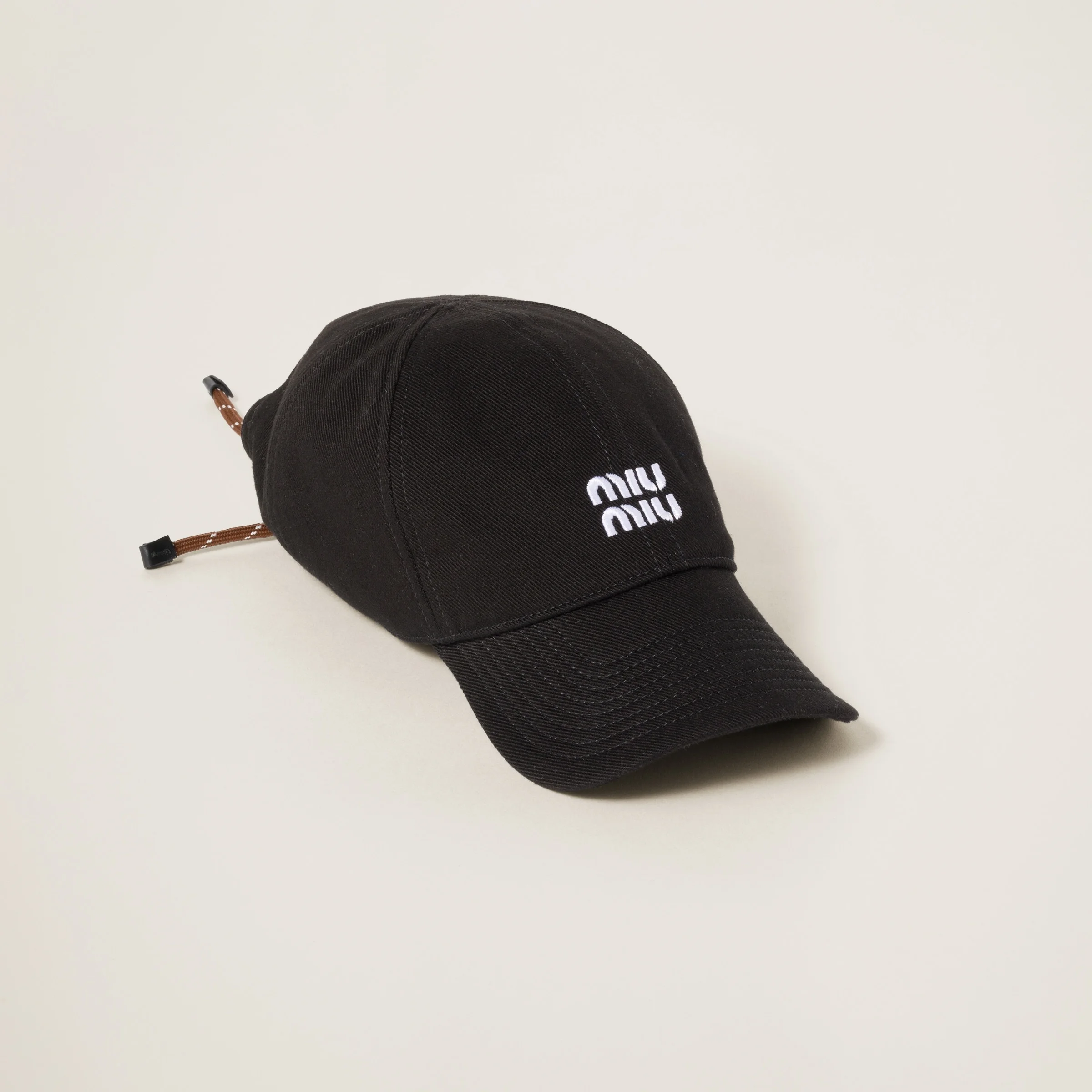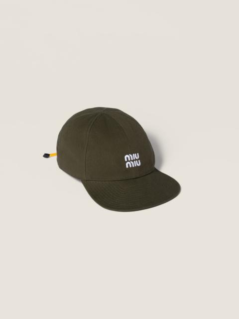 This sports-inspired baseball cap comes in a denim version decorated with the embroidered Miu Miu logo. - Product code: 5HC369_2CR1_F034S - Washed treatment - Embroidered logo - Imported Materials Main material: Cotton