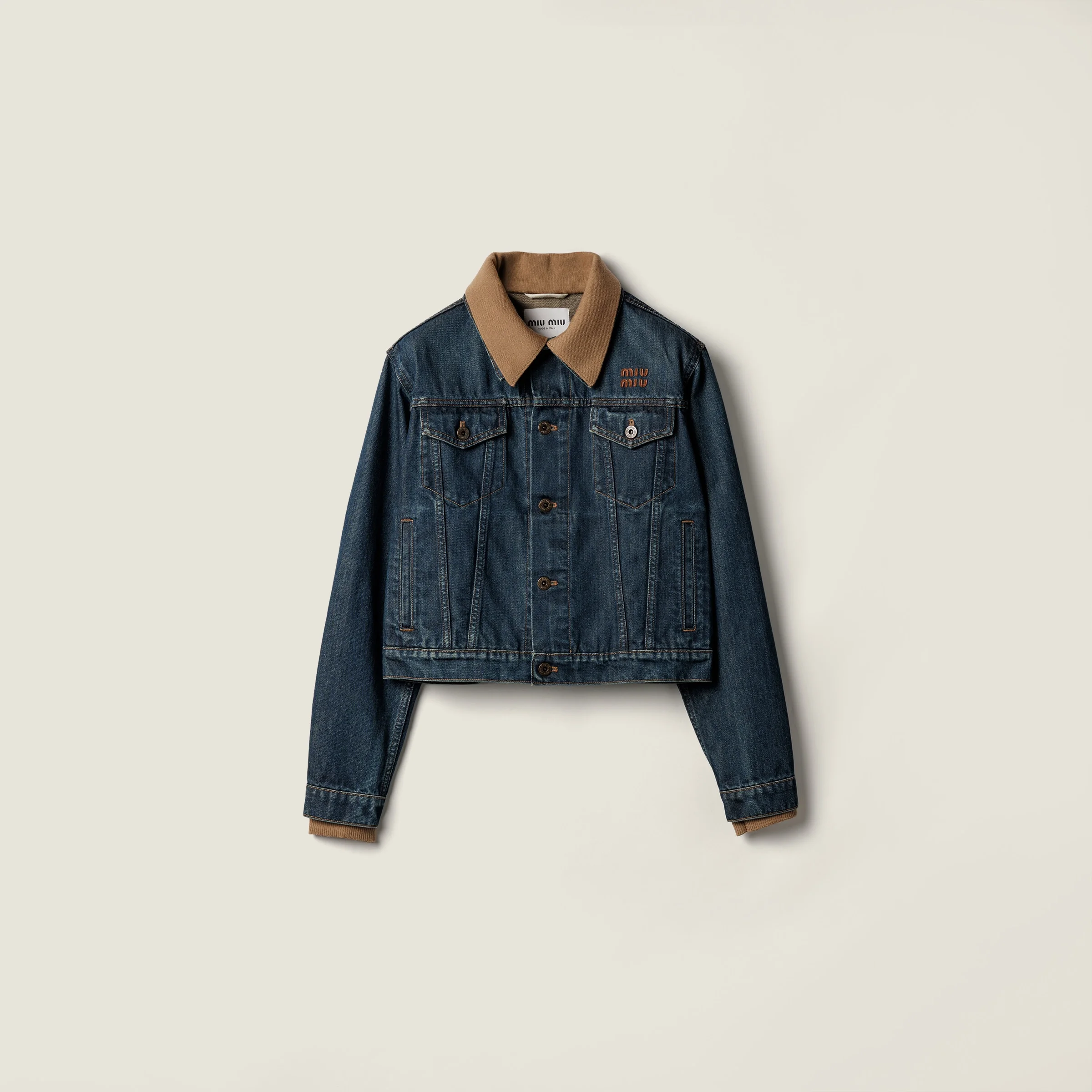 Inspired by a vintage aesthetic of the 1950s, stonewashed denim enhances the clean lines of this blouson jacket enriched with the leather logo and contrasting details on the knit collar and cuffs that emphasize the layering concept. - Product code: GWB278_17OM_F0008_S_OOO - Stonewashed treatment - Unlined garment - Straight fit - Shirt collar with double knit collar - Tailored sleeves, cuffs with buttons for double adjustment - Front button closure - Contrasting top-stitching - Flapped pockets with buttons on the chest - Low welt pockets - Center-back length: 52 cm, Size: 38 - Embroidered leather logo - Imported - The model is 179 cm tall and wears a size 38 Height 51cm Materials Main material: 100% Cotton