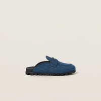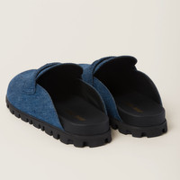 These mules are inspired by the classic loafer style, adding the unmistakable casual character of denim. In the '50s, loafers were part of school uniforms worn by U.S. prep school and college students. Annoyed by having to wear a uniform, students started inserting a shiny penny in the slot of the band, giving rise to the name "Penny Loafers". - Product code: 5D058E_AJ6_F0E93_F_010 - Upper with denim band with logo-engraved metal coin - Leather lining - Screen-printed logo - EVA sole - Star patterned tread - leather-covered insole - Imported