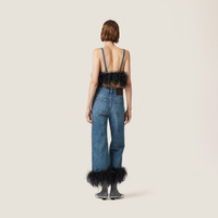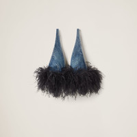 In this top, the unmistakable texture of denim meets the refined and sophisticated detail of feathers, creating a contrast in color and texture. - Product code: GWT055_139H_F0AI7_S_OOO - Washed denim treatment - Classic fit - Unlined - Side closure with hooks - Contrasting top-stitching - Imported - The model is 178 cm tall and wears a size 38