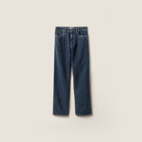 Starting with vintage denim, these jeans are treated with flock powder that enhances the deep blue and soft structure of the fabric, highlighting the relaxed fit and bold logo embroidered in a contrasting color. - Product code: GWP483_17L8_F0008_S_OOO - Soft wash treatment - Regular fit - Low-rise waist - Zipper fly with button - Contrasting top-stitching - Rounded pockets with front coin pocket - Patch pocket on the back - Total length: 107 cm, Size: 25 - Embroidered logo - Imported - The model is 177 cm tall and wears a size 38 Height 110cm Materials Main material: 100% Cotton