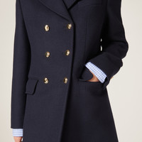 Menswear inspirations meet a distinctly feminine attitude in this double-breasted cloth coat. The buttons on the front and sleeves add shiny touches to the garment while the back vent lightens the silhouette. The embroidered logo completes the look with an unexpected iconic note. - Product code: MS1966_12U5_F0008_S_232 - Straight fit - Lined - Classic lapel - Front button closure - Sleeves with slit - Low flap pockets - Back vent - Embroidered logo - Imported - The model is 179 cm tall and wears a size 38 Height 105cm Materials Main material: 100% Virgin Wool