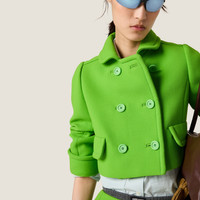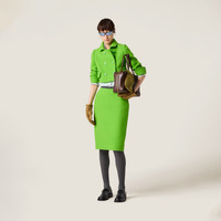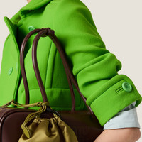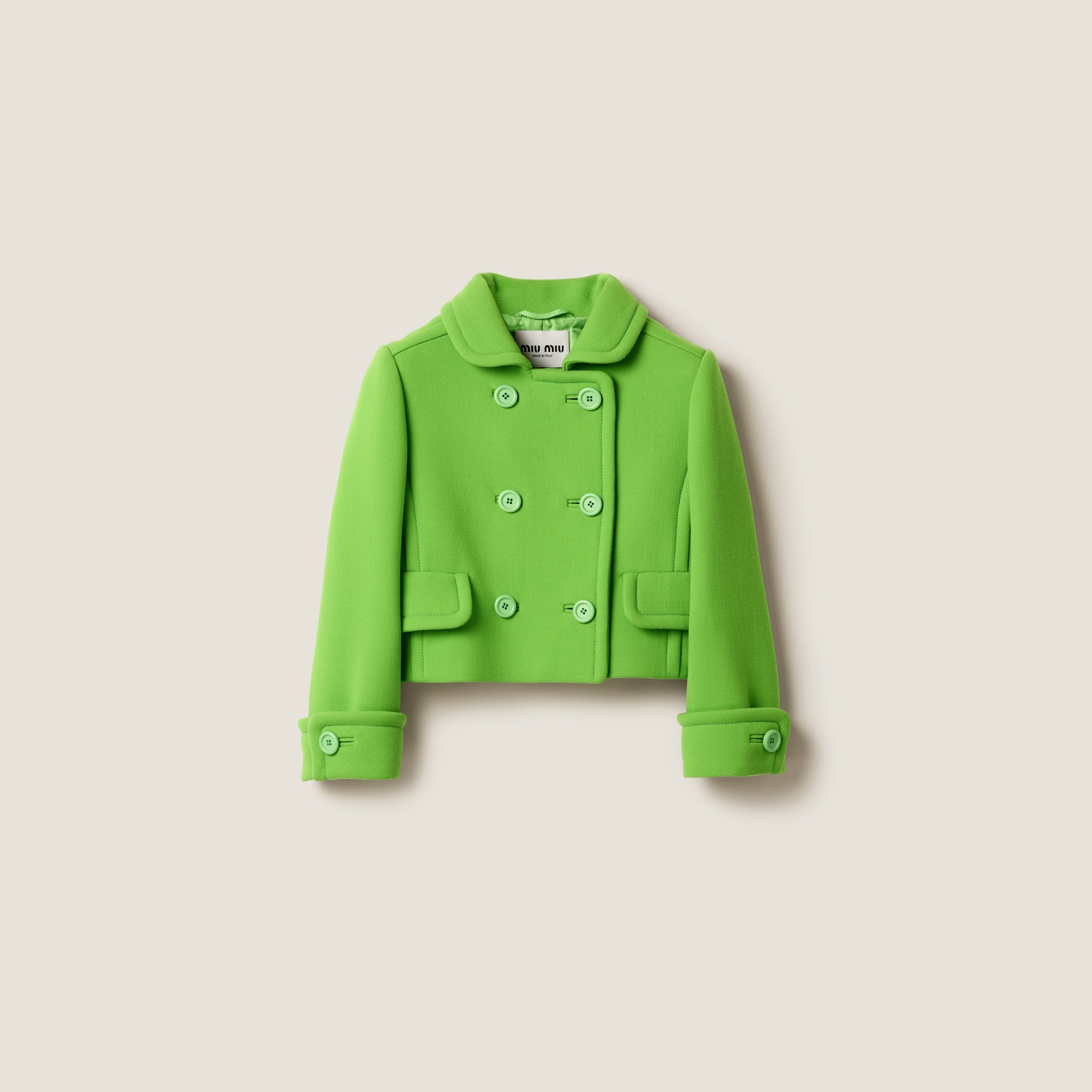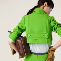 Refined materials and slightly voluminous lines create a jacket with modern character. The half-belt on the back adds a refined detail while the embroidered logo adds its signature touch to this stylish version. - Product code: MH1959_S31_F0225_S_OOO - Cropped silhouette - Lined - Notch lapel - Front button closure - Three-quarter sleeves with slits and buttons - Patch pockets - Half-belt on the back - Embroidered Miu Miu logo - Imported - The model is 180 cm tall and wears a size 38 Height 38cm