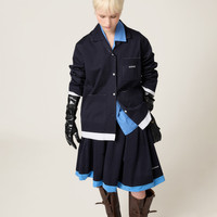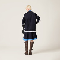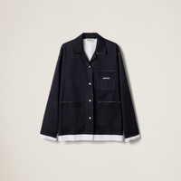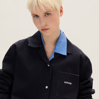 Iconic Miu Miu poplin is artisanally combined with knitwear, making this shirt unique. The layering effect and bowling collar redefine the classic essence of a garment with casual appeal. - Product code: MK1890_15Q9_F022X_S_OOO - Oversized - Lined garment - Front button closure - Straight sleeves - The product fits up to two sizes larger - Imported - The model is 178 cm tall and wears a size 38 Height 74cm Materials Main material: 100% Silk