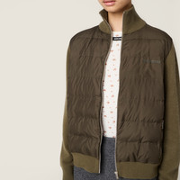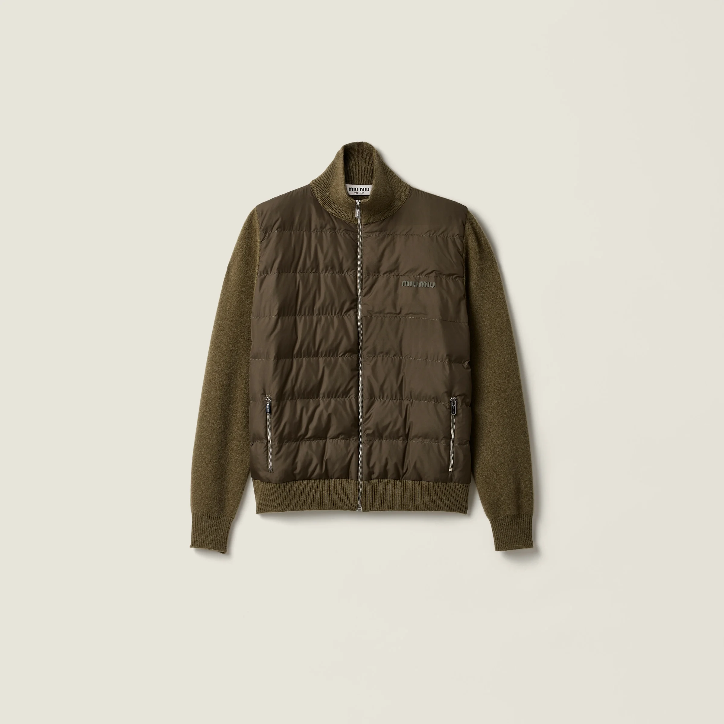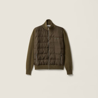 This soft cashmere cardigan combines refined knitwear with practical outerwear thanks to the detail of technical ponge fabric padded with goose down, for a versatile, hybrid garment. - Product code: MMF00W_18SJ_F0393_S_OOO - Plain knit - Regular fit - Goose down padding - Long sleeves - Ribbed knit turtleneck - Regular shoulder - Front zipper closure - Ribbed knit cuffs and hem - Lettering logo - Imported - The model is 176 cm tall and wears a size 38 Height 56cm Materials Main material: 100% Cashmere