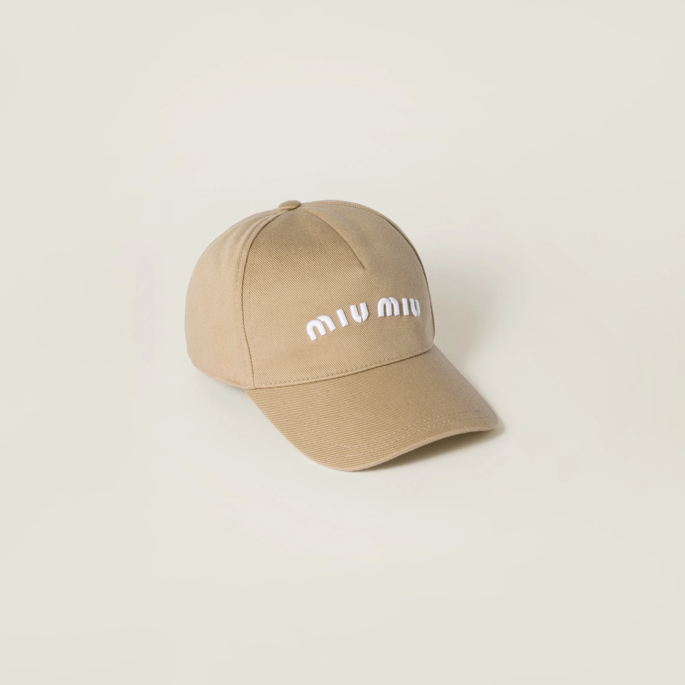 This drill baseball cap, characterized by a casual spirit and the embroidered logo in a contrasting color, becomes a symbol of the Miu Miu wardrobe, ideal for completing every look with a touch of iconic style. - Product code: 5HC179_ADXI_F011P - Embroidered logo - Faille lining - Imported Materials Main material: Cotton