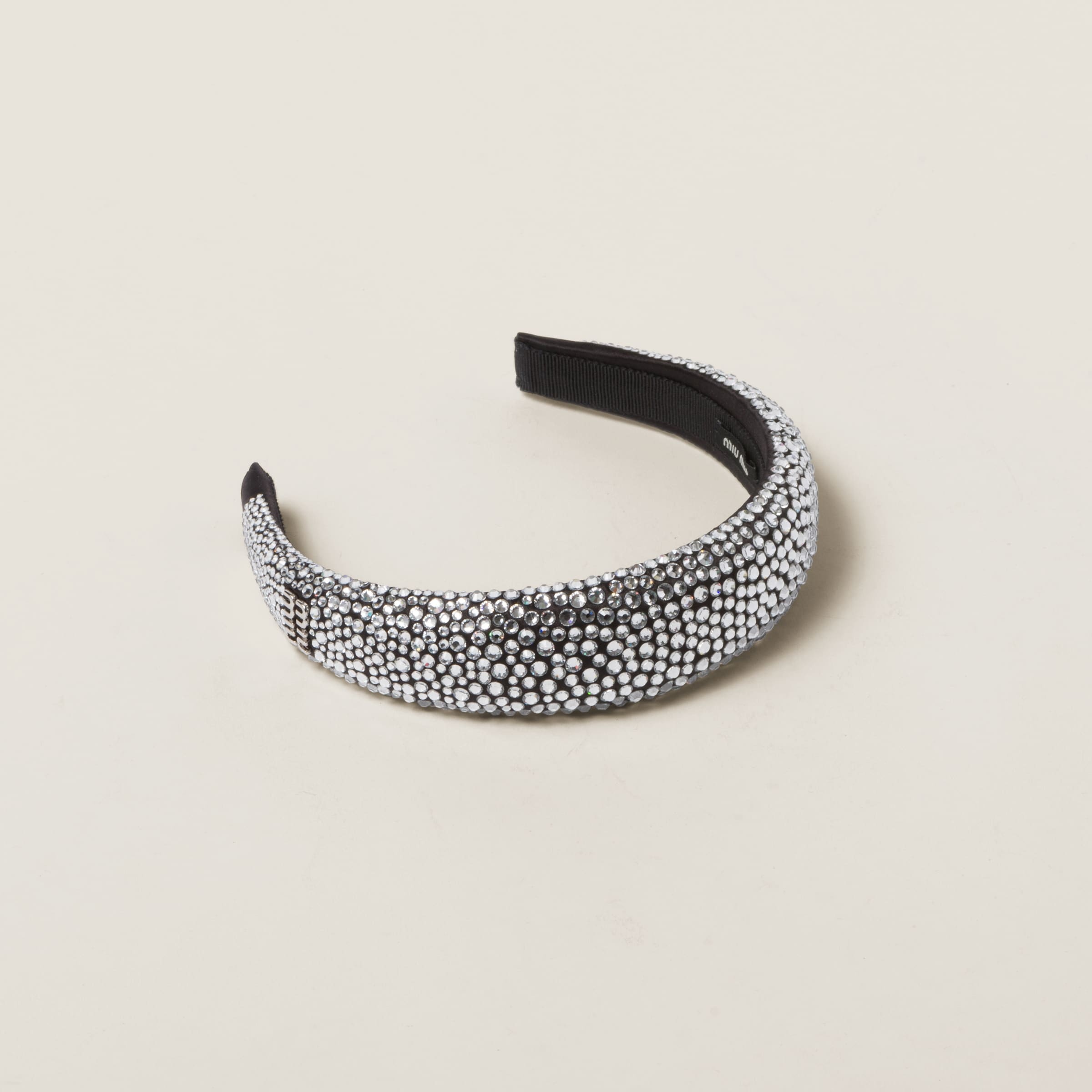 This duchesse headband is characterized by its refined, luminous style. The crystals sparkle on the accessory while the metal lettering logo adds its signature touch to this stylish interpretation. - Product code: 5IH025_2CPY_F0002 - With synthetic crystals - Metal lettering logo - Height: 4cm - Width: 6,2cm - Imported
