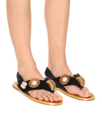 Embellished cotton thong sandals