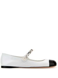 patent leather ballerinas Highlights - White/black - Calf leather - Patent finish - Press-stud fastening - Silver-tone hardware - Chain-link detailing - Faux-pearl detailing - Contrasting toecap - Round toe - Branded leather insole - Flat leather sole Composition Outer: Calf Leather 100% Lining: Calf Leather 100% Sole: Calf Leather 100%