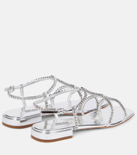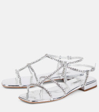 These sandals from Miu Miu feature crystal-embellished straps to transform your look from casual to glam. They are set on flat soles with a smooth leather insole. Product Details - Lining: leather - Closure: buckle fastening - Sole: leather insole and sole - Upper: leather - Comes with a box - Designer color name: Argento - Toe shape: square open toe - Made in Italy - Item number: P00782764 Size & Fit - True to size - European sizes - 2,5cm-1" heel (size EU 38)